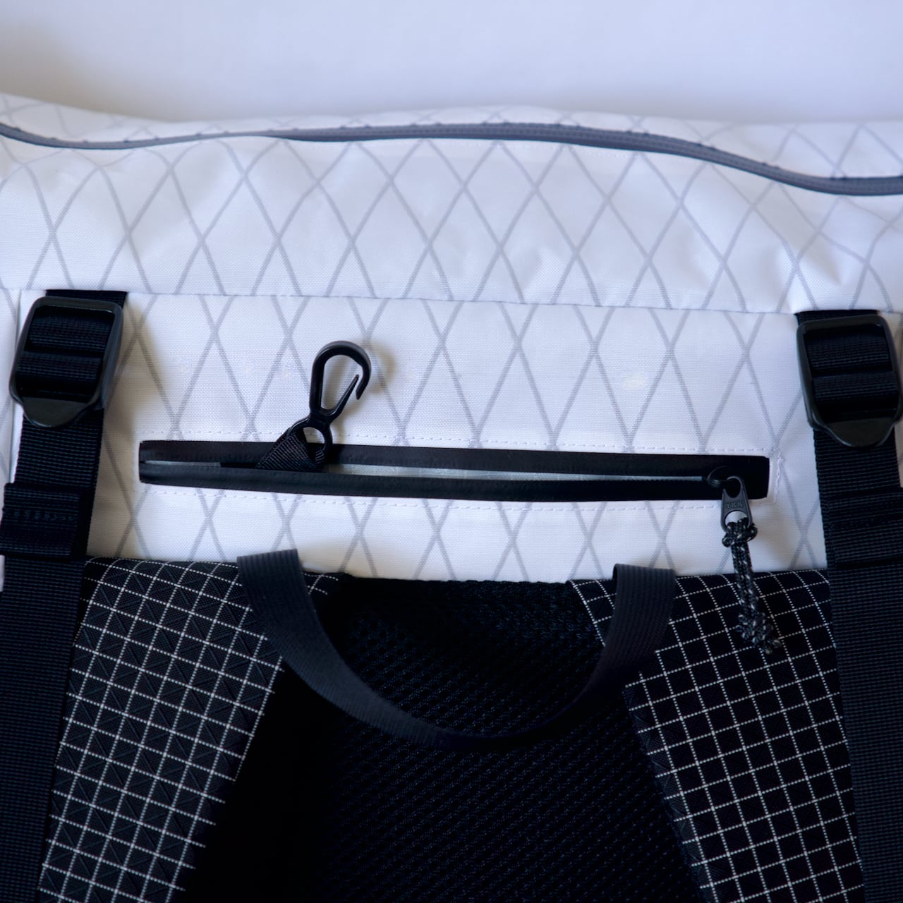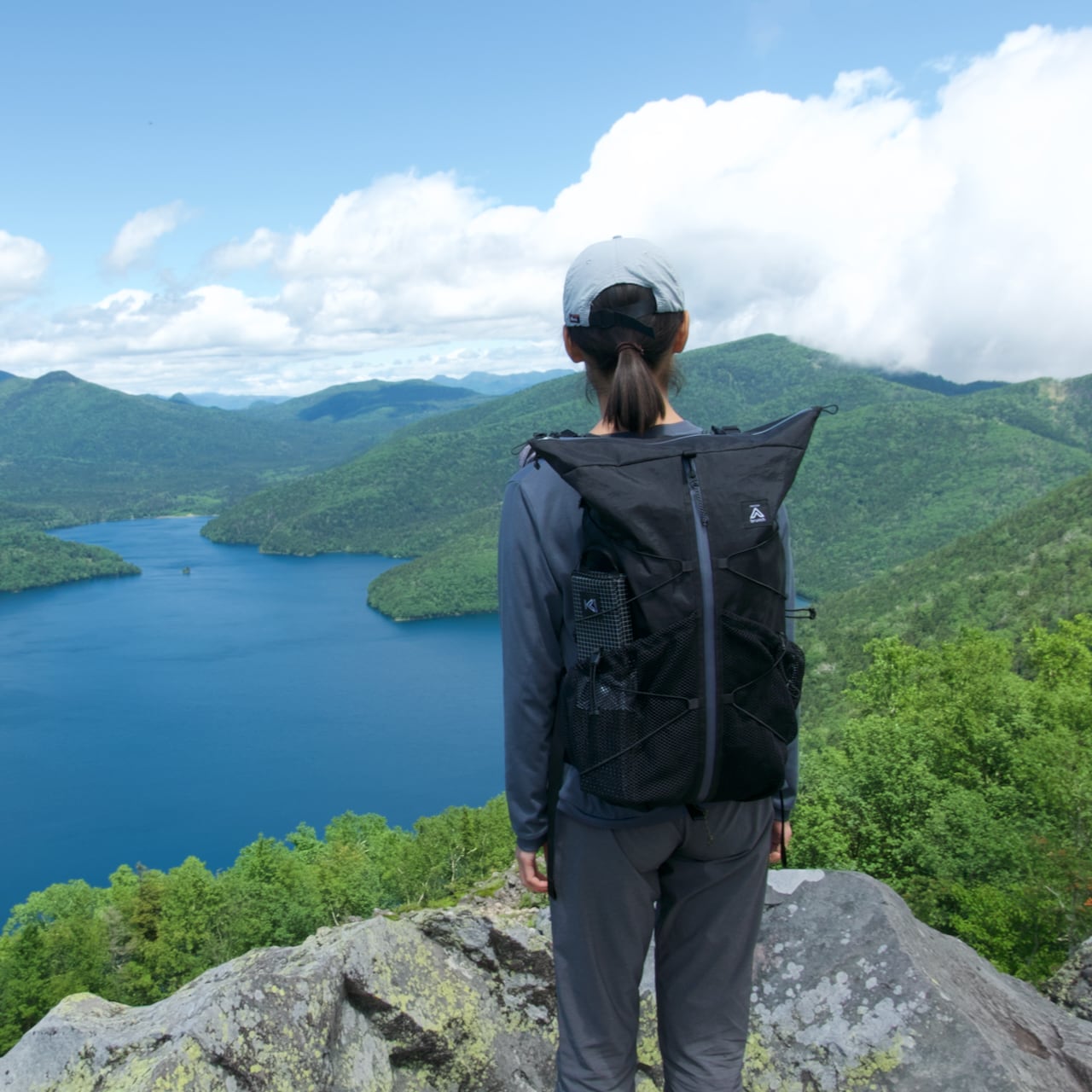 日帰り登山や旅行に最適な20リットルサイズの小型バックパックです。上部と前面には止水ファスナーを配置。特に前面は53cmと長く、大きく開くので荷物の出し入れがスムーズで簡単です。上部ファスナーは荷物を効率よくパッキングする際も便利な設計です。